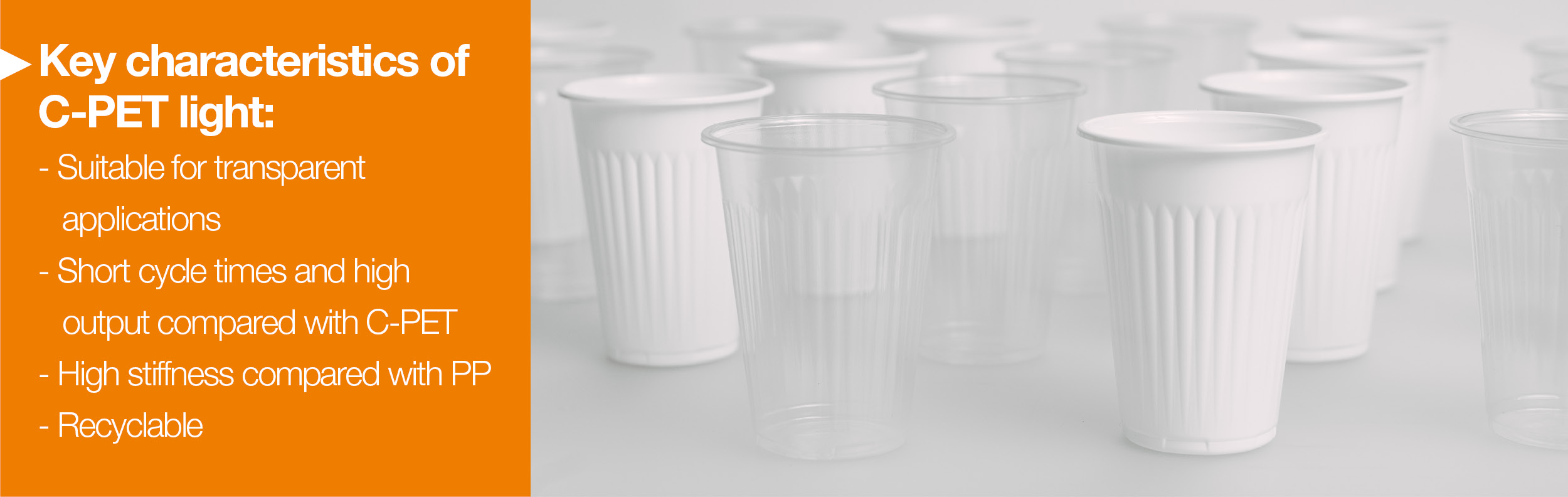 ,C-PET 薄片結合了透明度、可回收性以及熱成型熱沖填產品經濟生產的適用性。