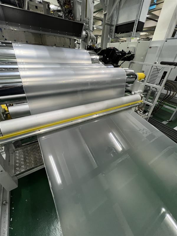勝東引進奧地利SML 公司最新一代高速高產能 , 吸塑成型用、雙層共擠PP 板材生產線、75mm 押出機 。