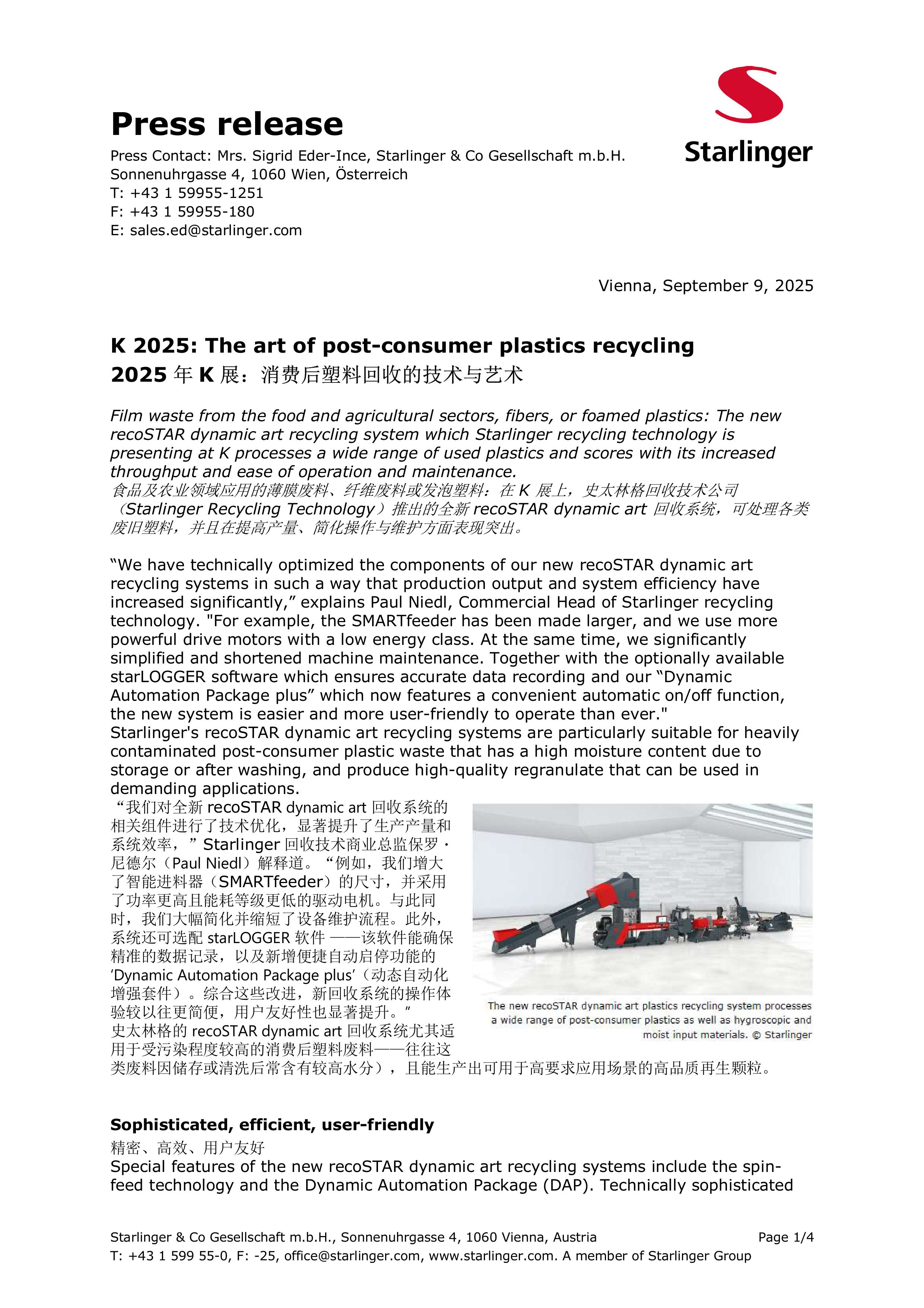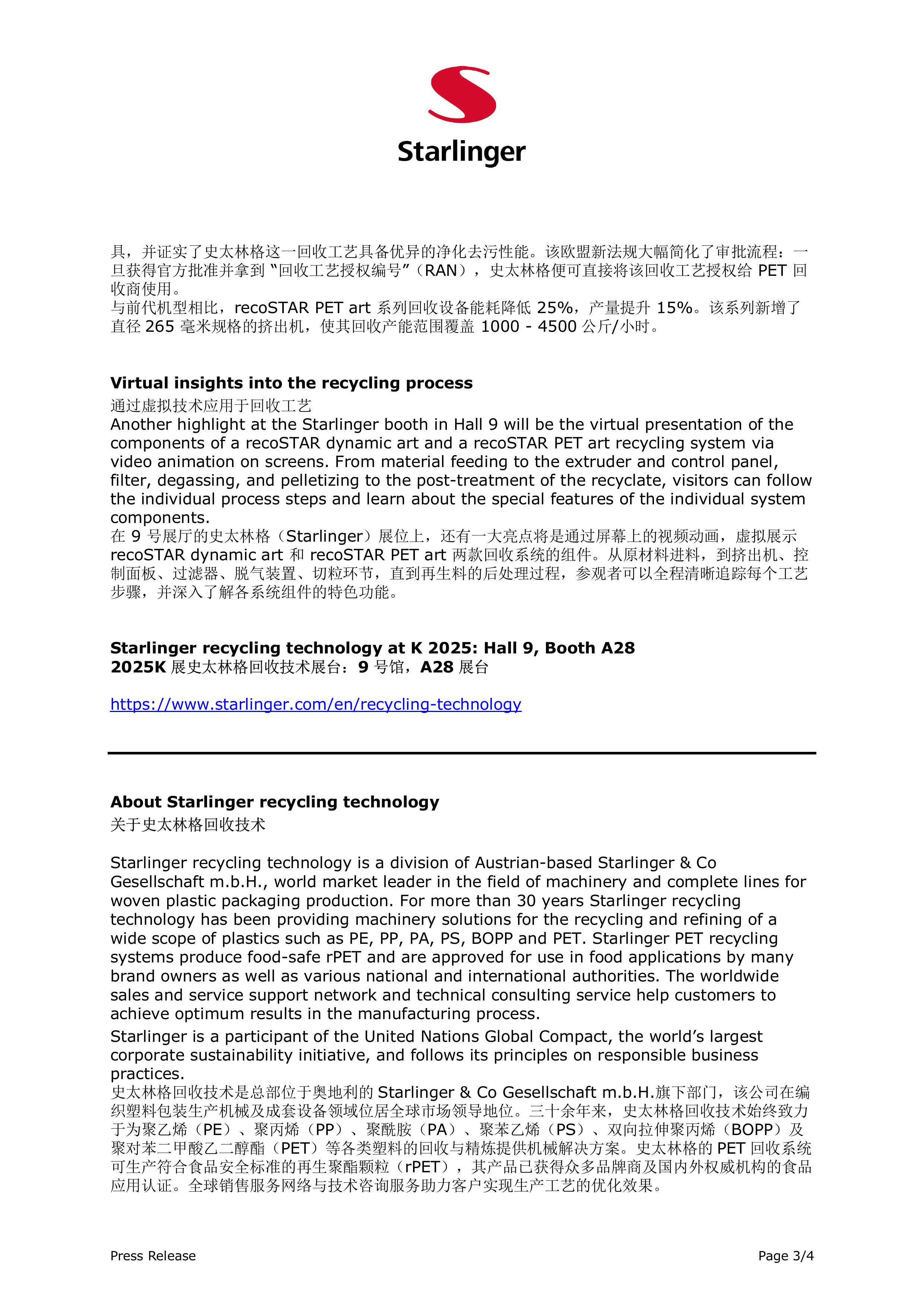 Starlinger 2025 年K 展:消费後塑料回收的技術與藝術